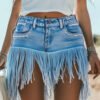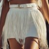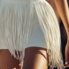 Personality Long Tassel Belt White Shorts
