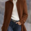 Casual Vintage Pink Polar Fleece Zip-Up Jacket Coat