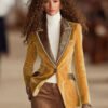 This consigned velvet blazer is selected for its structured silhouette and refined surface texture. Crafted from a soft velvet fabric, it offers a smooth hand feel with a subtle sheen that enhances its tailored appearance. The one-button front creates a clean, streamlined profile while the leopard stitching detail adds visual depth without overpowering the design. Designed to sit comfortably through the shoulders with a gently shaped waist, this blazer works well for both casual and elevated styling.