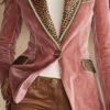 Pink Velvet Stitching Leopard Print One Button Blazer
