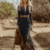 Be the first to review “Vintage Bohemian Blue Lace Long Sleeve Midi Dress”