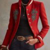 Be the first to review “Western-style Stand-up Collar Single-breasted Floral Embroidered Velvet Jacket”